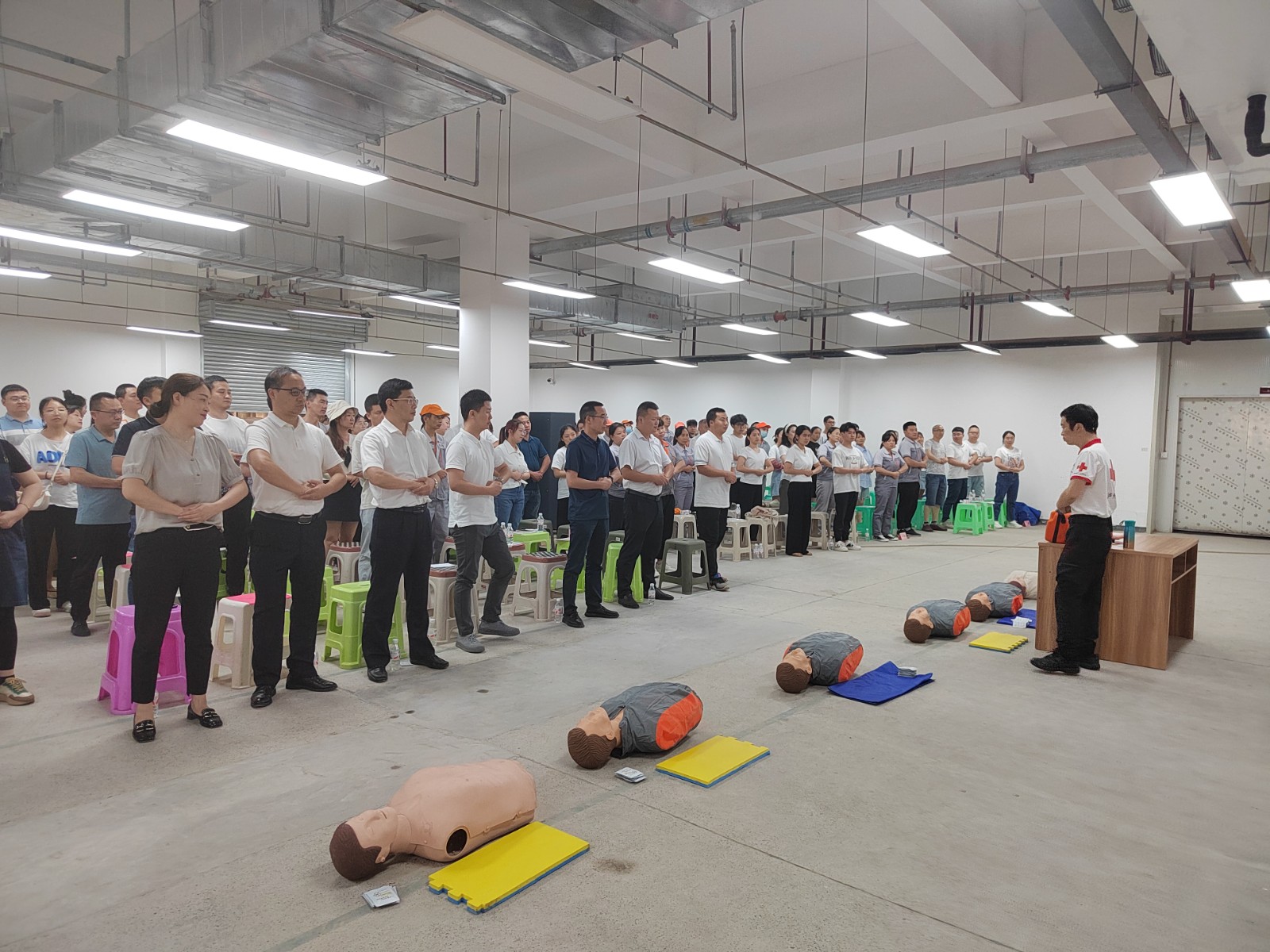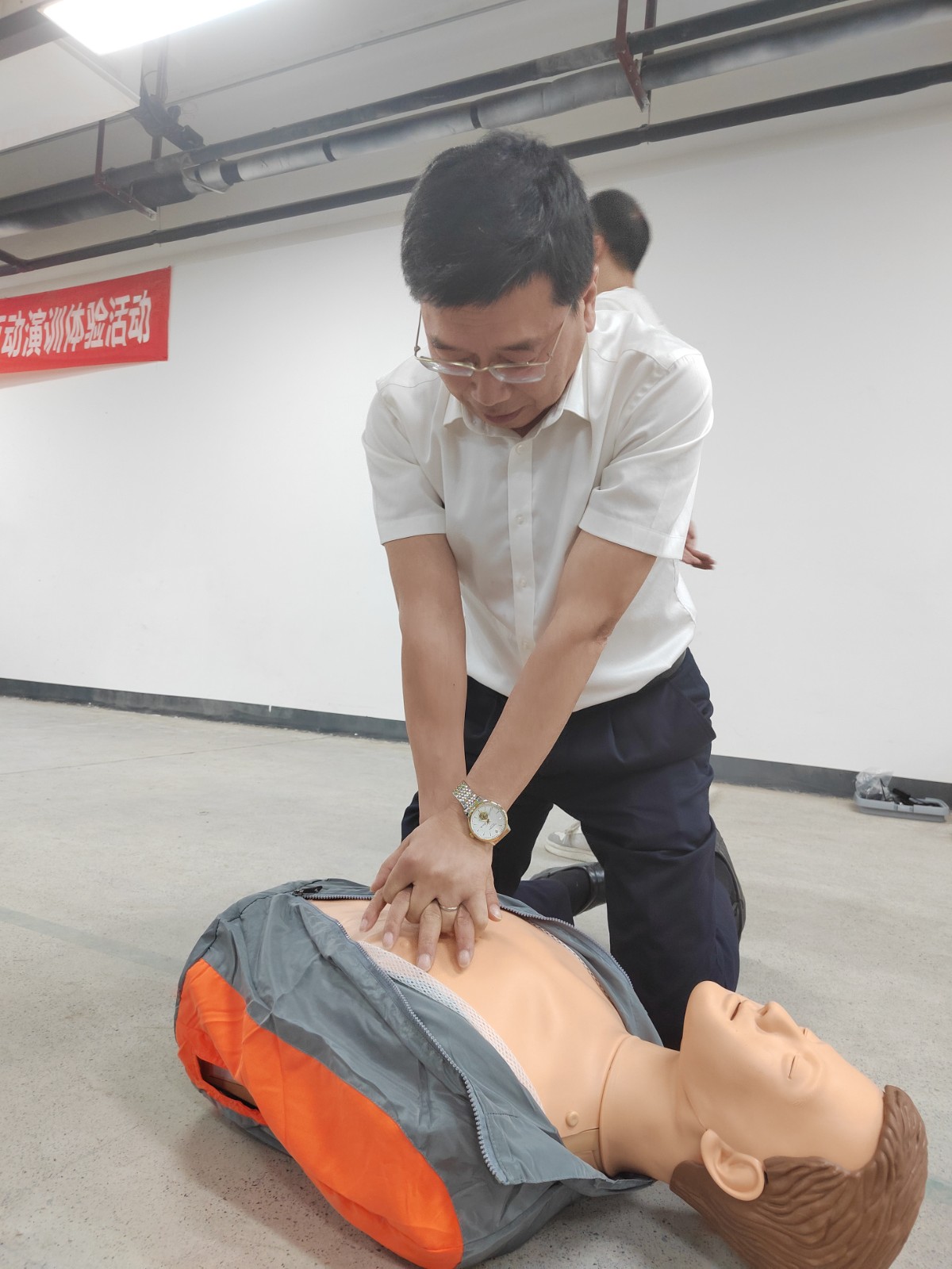 活動中,消科委教官通過三維立體逃生帳篷模擬真實火場黑暗、濃煙、高溫環境,掌握在火場中基本的逃生方法和避難技巧;在火災發生時,使用正確方式方法,進行火場疏散逃生,運用真實火線穿越提升火場逃生自救能力;理論與實踐相結合,更好、更快、更有效的參與到初期火災的應急處置中,通過滅火實操提升應急處置技能;市紅十字會副會長胡坤分別講授針對驟停心臟導致呼吸停止和清除上呼吸道異物采取的心肺復蘇法(CPR)和海姆立克急救法,為急救病人爭取黃金救治時間。
