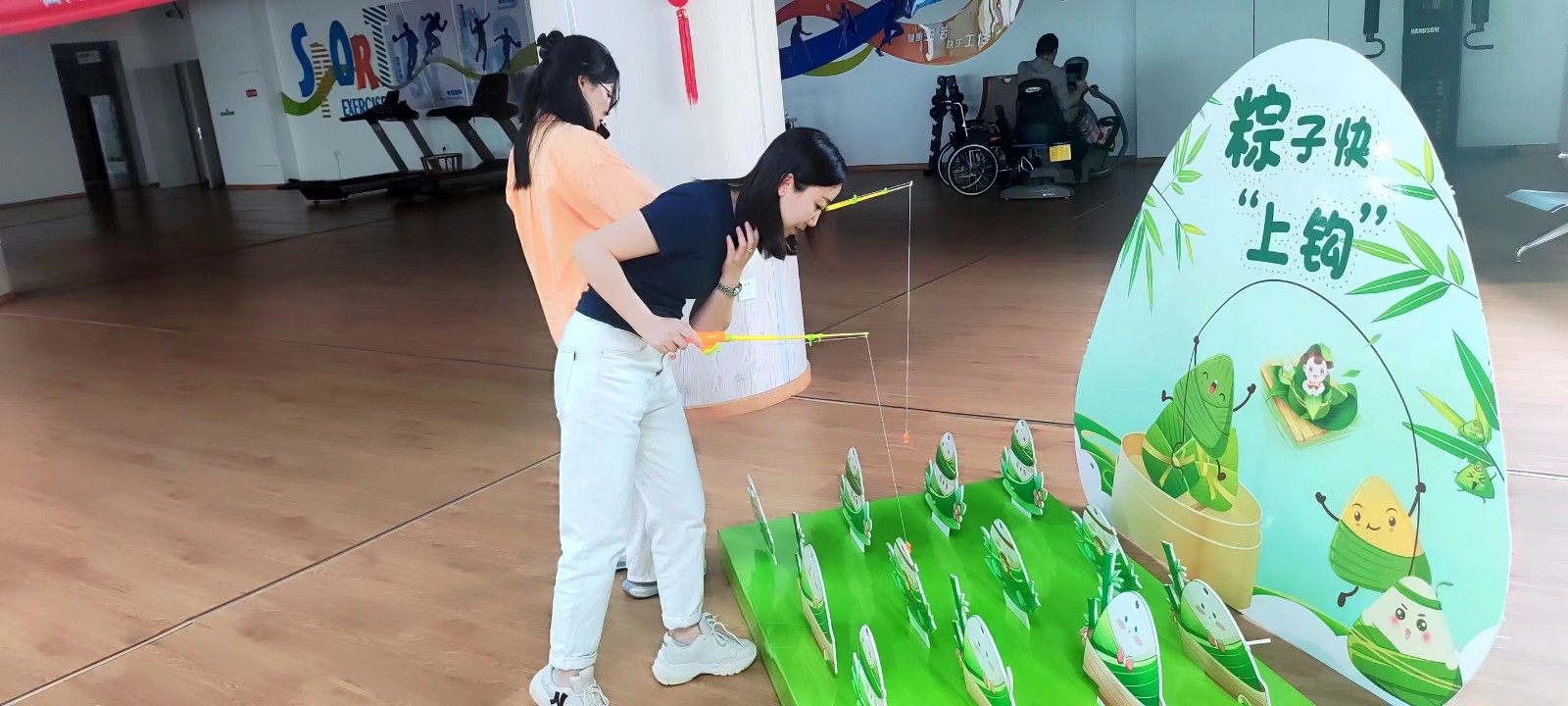 活動(dòng)現(xiàn)場(chǎng),立足于傳統(tǒng)節(jié)日民俗體驗(yàn),設(shè)置了投“?!贝笞鲬?zhàn)、粽子快“上鉤”、童年紙飛機(jī)等豐富多彩的活動(dòng)游戲攤位,融合中華傳統(tǒng)節(jié)日文化知識(shí),并通過游戲化、體驗(yàn)式的闖關(guān)游戲,讓職工們感受中華傳統(tǒng)節(jié)日的魅力。在包粽子環(huán)節(jié),大家圍在一起捋粽葉、填糯米、封口、捆扎,互幫互助,巧手翻飛,不一會(huì)兒,一個(gè)個(gè)翠綠欲滴、有棱有角的粽子就成型了。