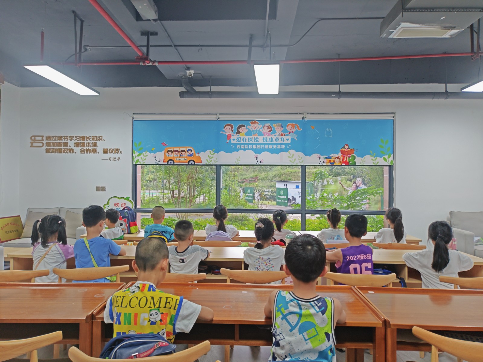 7月8日,西南醫(yī)投集團(tuán)“愛在醫(yī)投 悅康童年”托管服務(wù)基地正式開放,第一期暑期托管班開班儀式在春江酒城嘉苑營銷大廳隆重舉行。來自西南醫(yī)投集團(tuán)工會和關(guān)工委、春江酒城嘉苑離退休黨支部、醫(yī)養(yǎng)投資公司、醫(yī)療投資公司相關(guān)負(fù)責(zé)人,以及27名職工和子女共計(jì)60余人參加開班儀式。此次活動(dòng)得到了市總工會、發(fā)展控股集團(tuán)工會領(lǐng)導(dǎo)的高度重視和大力支持,市總工會女工部孫璐部長親自蒞臨講話并為托管服務(wù)基地揭牌。此次活動(dòng)集聚了西南醫(yī)投集團(tuán)“四醫(yī)”健康產(chǎn)業(yè)特色,充分融合了“黨建+統(tǒng)戰(zhàn)+群團(tuán)”優(yōu)勢,切實(shí)解決了職工子女暑期“看護(hù)難”問題,為職工提供了友好的工作環(huán)境。