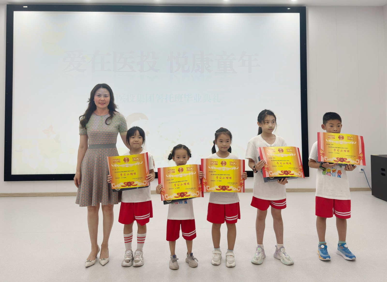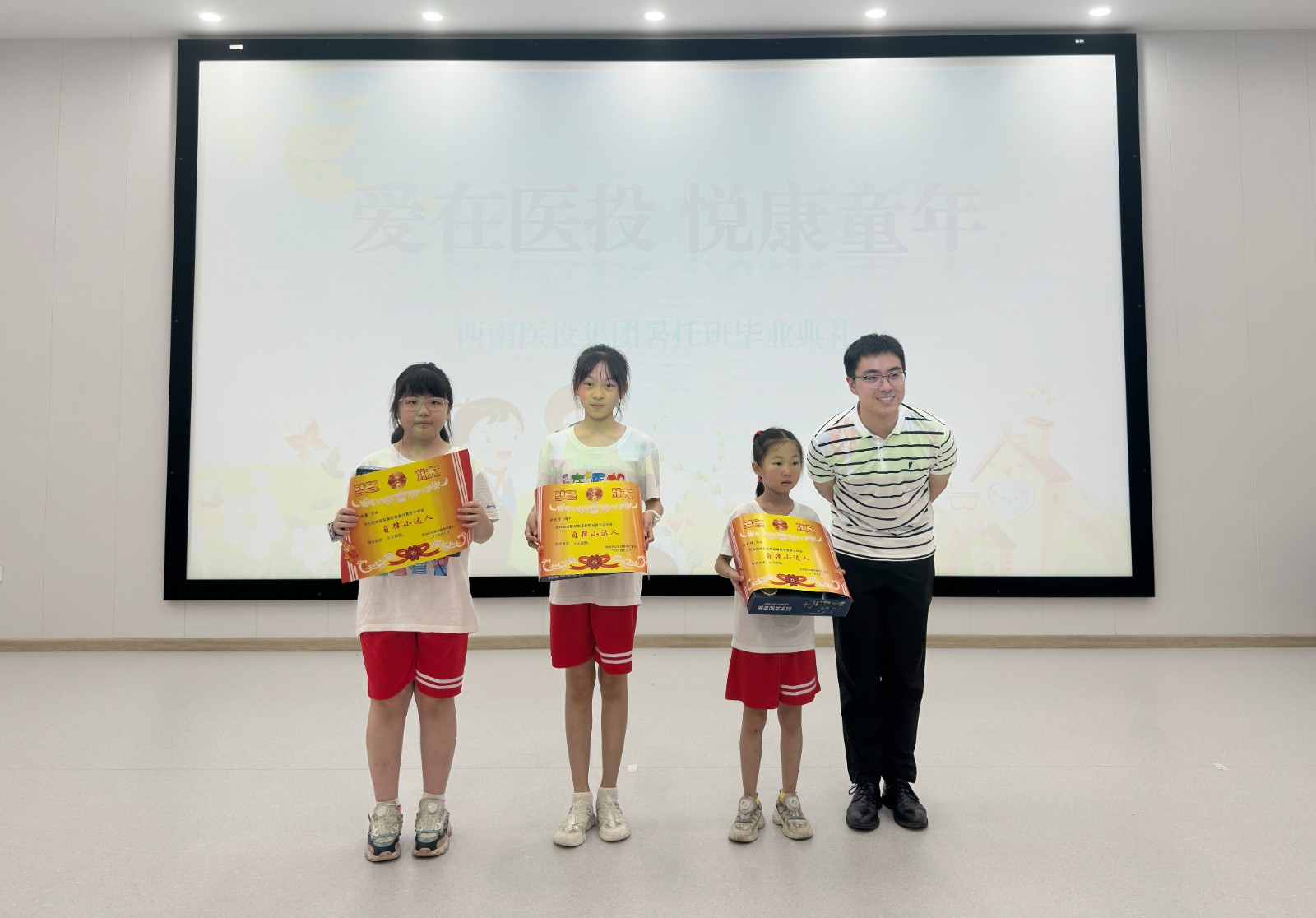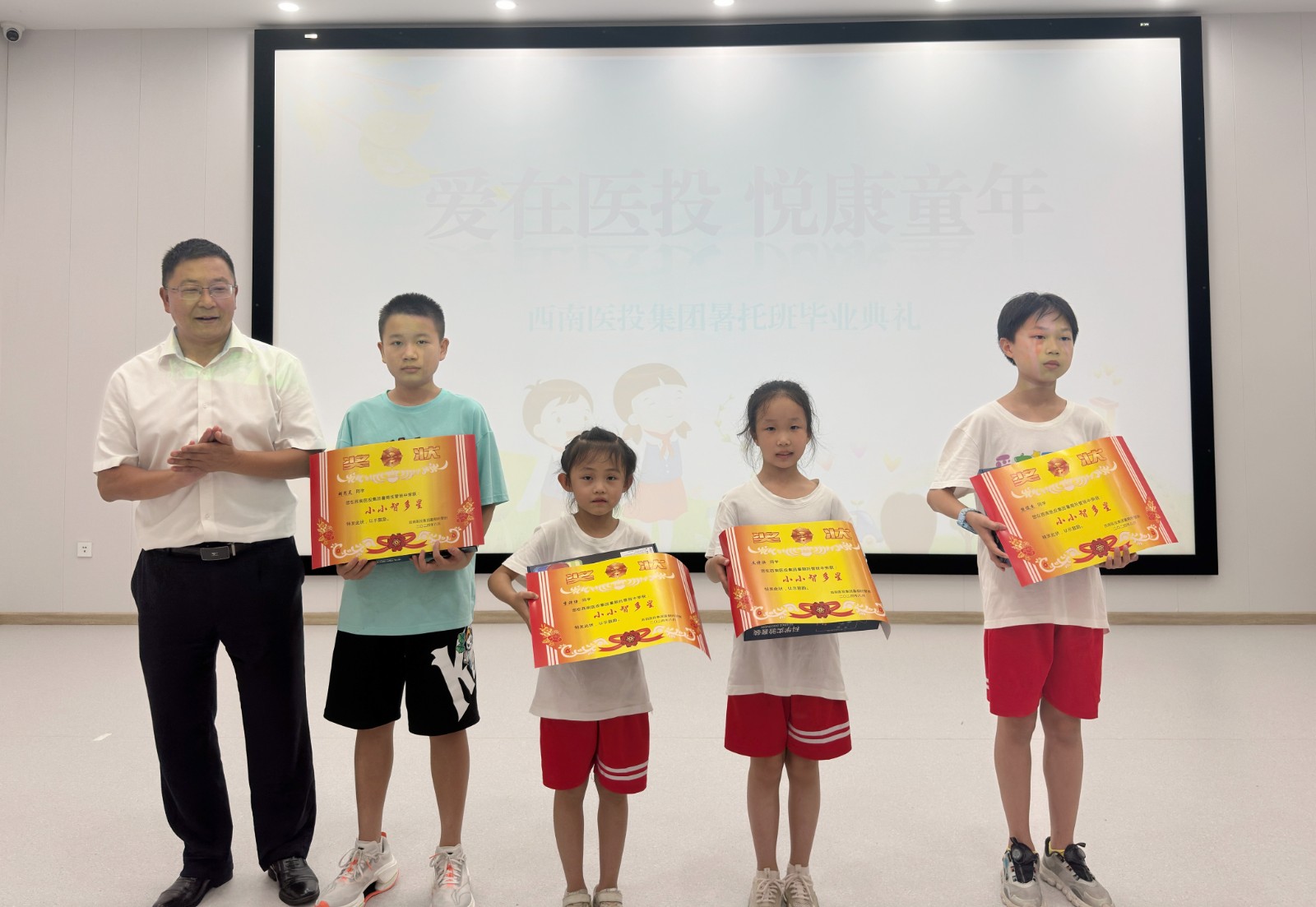 82日上午,西南醫投集團愛在醫投 悅康童年第一期暑期托管班畢業典禮在春江酒城嘉苑營銷大廳舉行。